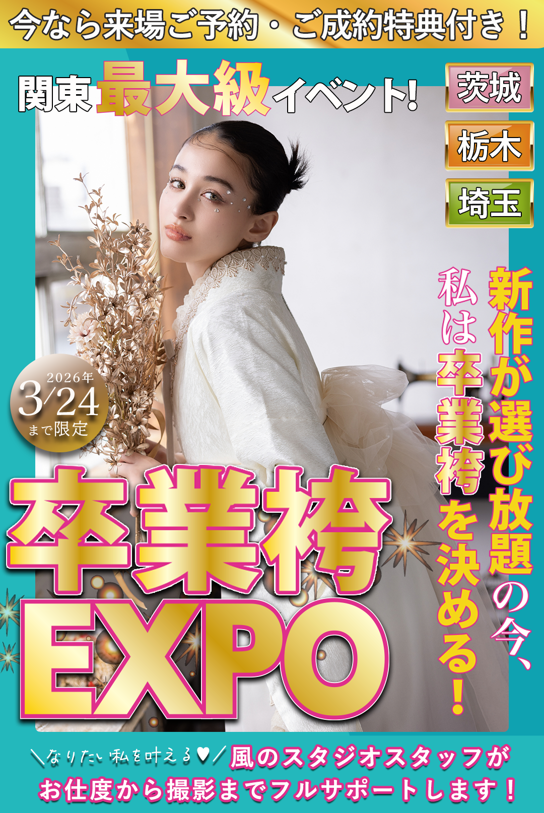 3/24まで★卒業袴EXPO 2026.02.01 卒業袴 お問合せ・ご予約 フォーム お近くの店舗をお選び下さい。後ほど、該当店舗の担当者からご連絡をさせて頂きます。 店舗選択 必須 —以下から選択してください—古河本店イオンモール下妻店インターパーク宇都宮店ベルモール宇都宮店ハーヴェストウォーク小山店イオンタウン真岡店アリオ鷲宮店イオンモール上尾店ウニクス南古谷店大宮マルイ店 お名前 必須 ふりがな 郵便番号 必須 ご住所 必須 ご連絡のつきやすい電話番号 必須 メールアドレス ※ご入力されたメールアドレスにご入力情報メールが配信されます。 お問合せ・連絡事項がある場合はご記載ください ご来店ご予約をご希望の場合は、ご希望日&時間区分をご選択ください ※本日より4日後から日程を選択できます ※場合により日時の再調整をお願いする場合がございます 予めご了承ください。 ※定休日:古河本店/火曜日(祝日は営業) 真岡店/火曜日(祝日は営業) 南古谷店/火曜日(祝日は営業) 大宮店/火曜日(祝日は営業) ご来店ご予約ご希望日 ご来店ご予約ご希望 時間区分 —以下から選択してください—午前午後どちらでも 卒業袴 お問合せ・ご予約 フォーム お近くの店舗をお選び下さい。後ほど、該当店舗の担当者からご連絡をさせて頂きます。 店舗選択 必須 —以下から選択してください—古河本店イオンモール下妻店インターパーク宇都宮店ベルモール宇都宮店ハーヴェストウォーク小山店イオンタウン真岡店アリオ鷲宮店イオンモール上尾店ウニクス南古谷店大宮マルイ店 お名前 必須 ふりがな 郵便番号 必須 ご住所 必須 ご連絡のつきやすい電話番号 必須 メールアドレス ※ご入力されたメールアドレスにご入力情報メールが配信されます。 お問合せ・連絡事項がある場合はご記載ください ご来店ご予約をご希望の場合は、ご希望日&時間区分をご選択ください ※本日より4日後から日程を選択できます ※場合により日時の再調整をお願いする場合がございます 予めご了承ください。 ※定休日:古河本店/火曜日(祝日は営業) 真岡店/火曜日(祝日は営業) 南古谷店/火曜日(祝日は営業) 大宮店/火曜日(祝日は営業) ご来店ご予約ご希望日 ご来店ご予約ご希望 時間区分 —以下から選択してください—午前午後どちらでも LATEST EVENTS 今一番人気のプラン教えます♥新プラン【エクラ】登場! 3/24まで!新作が選び放題 卒業袴EXPO☆ 3/24まで★卒業袴EXPO