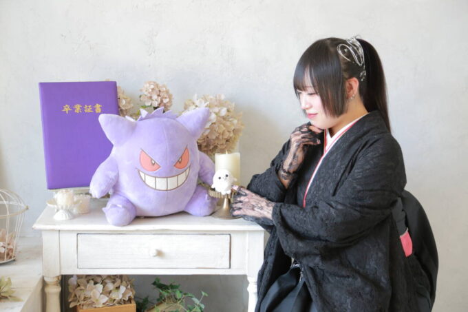 これもスタジオならでは!お持ちいただいたグッズや学校で使った思い出の品などでお写真が残せちゃいます♡
