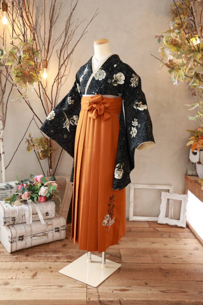 セットの袴が落ち着いたオレンジの為、派手すぎないコーデになっています