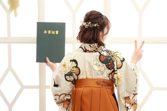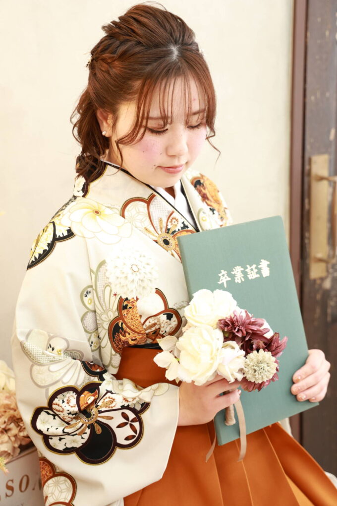 卒業式後であれば、実際の卒業証書と一緒に写真を撮る事もできます♪